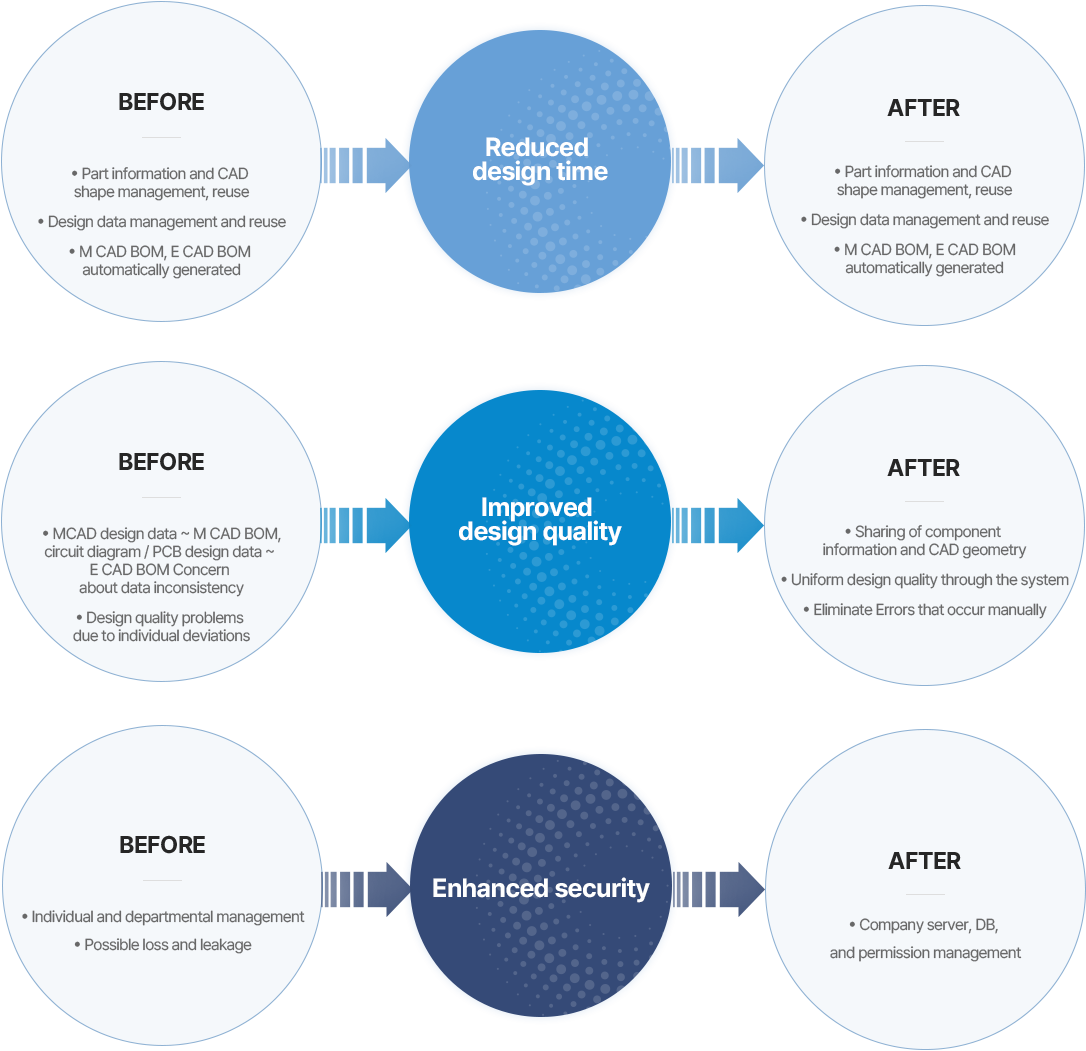 Workflow 기반 Web제품으로 전자 전기 기구 CAD Tool 및 ERP등 기간 시스템과 연동